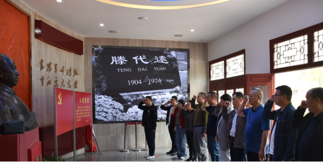 全體黨員干部首先來(lái)到滕代遠(yuǎn)紀(jì)念館,在解說(shuō)員的引導(dǎo)下參觀了滕代遠(yuǎn)紀(jì)念館,聽(tīng)取革命先輩拋頭顱灑熱血的革命戰(zhàn)爭(zhēng)歷史,回顧了先烈英勇斗爭(zhēng)的崢嶸歲月。在支部書(shū)記鄧永光的帶領(lǐng)下,全體黨員面對(duì)鮮紅的黨旗,莊嚴(yán)地舉起右拳,重溫入黨誓詞,以鏗鏘有力的宣誓表達(dá)對(duì)共產(chǎn)主義事業(yè)的無(wú)限忠誠(chéng)和熱愛(ài),更加堅(jiān)定了永遠(yuǎn)聽(tīng)黨指揮、對(duì)黨忠誠(chéng)、全心全意為人民服務(wù)的理想信念。